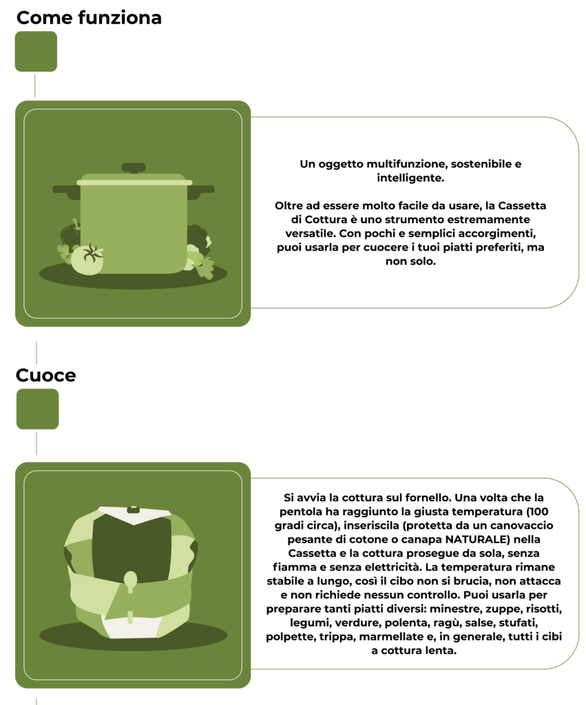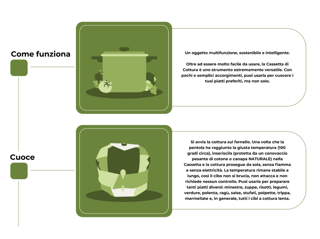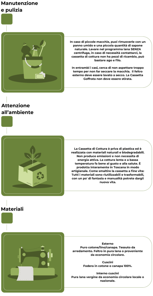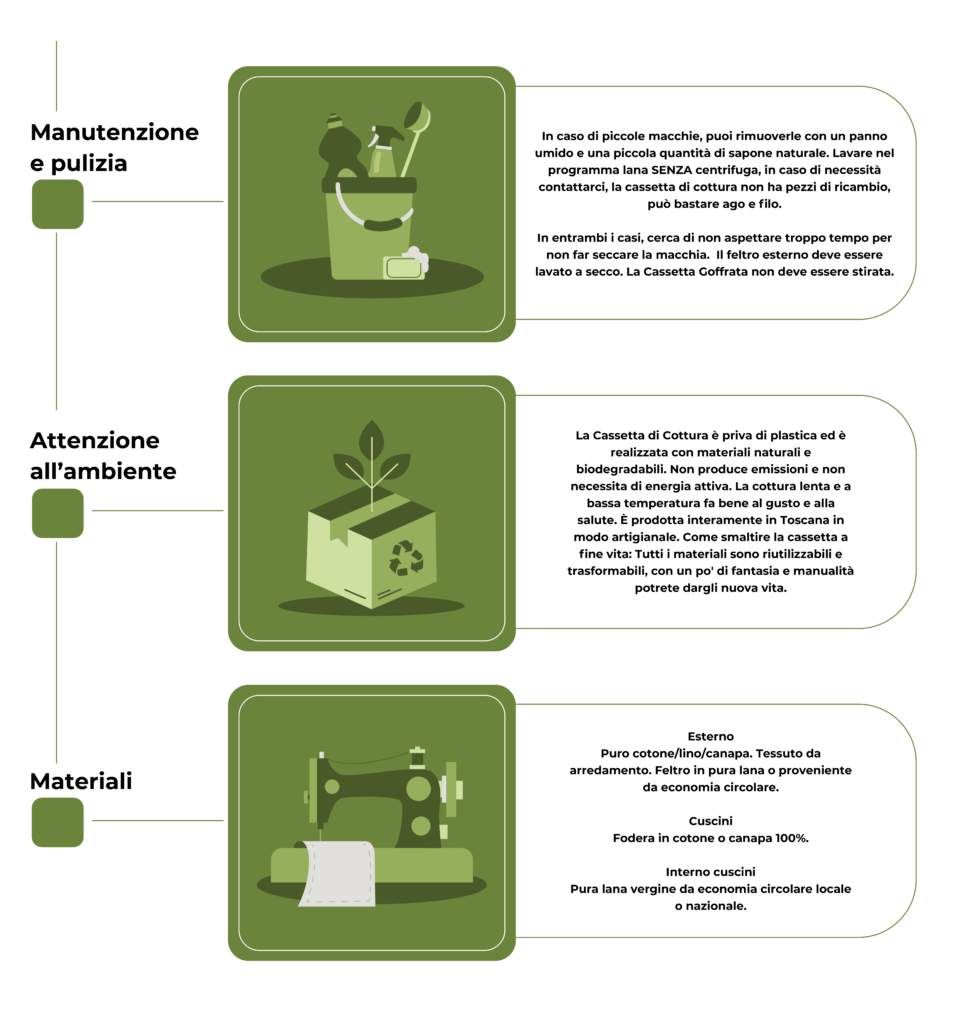 • Proteggi sempre la Cassetta posizionando, prima di inserire la pentola, un canovaccio al suo interno. Il canovaccio può essere in puro cotone, o, meglio ancora, in tessuto di canapa o ignifugo, MAI in fibre sintetiche.