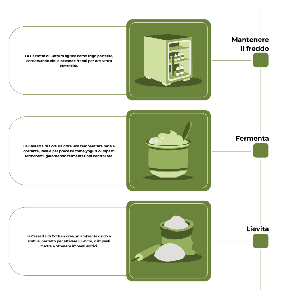 • La Cassetta di Cottura lavora quando rimane chiusa, senza aperture durante il processo.